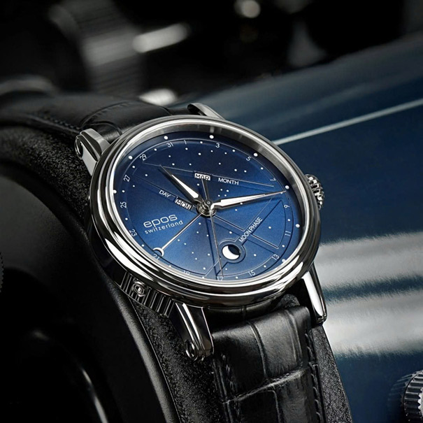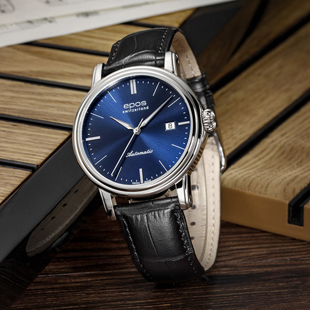 Đồng hồ Epos Swiss E-3390.152.20.16.25 – Biểu tượng của sự thanh lịch, gây ấn tượng với mặt số xanh dương huyền bí.